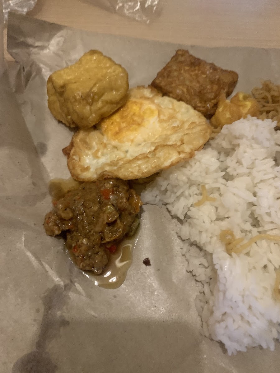 This place is best known for its bold, spicy flavors, especially the Ayam Gepuk Pedas Tahu Tempe. The chicken is smashed to perfection, tender on the inside, and generously coated with fiery sambal that delivers a deep, lingering heat. Paired with crispy tofu and tempeh, the dish feels complete and comforting, especially if you enjoy Indonesian-style spice that doesn’t hold back. It’s the kind of menu item that keeps regulars coming back and leaves a strong impression on first-time visitors.